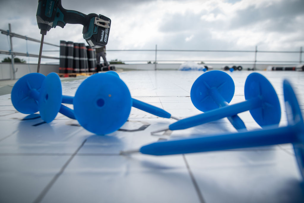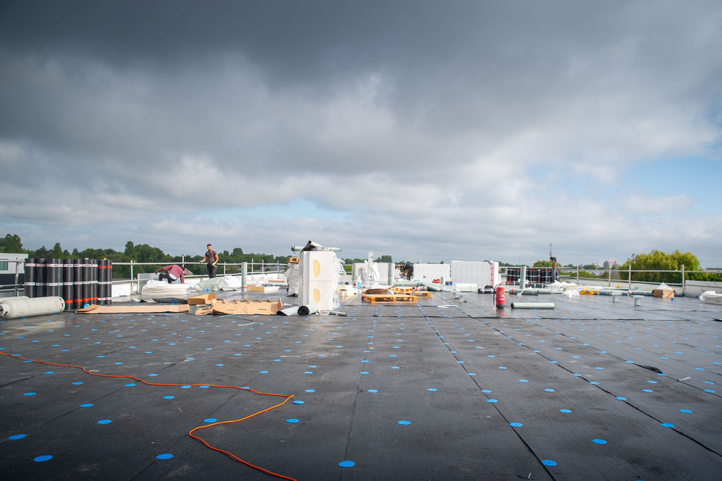 De werkzaamheden startten met het aanbrengen van 140 mm PIR-isolatie over het gehele dakvlak. Deze isolatielaag vormt de basis voor een energiezuinig dak dat voldoet aan de actuele bouw- en duurzaamheidsnormen.