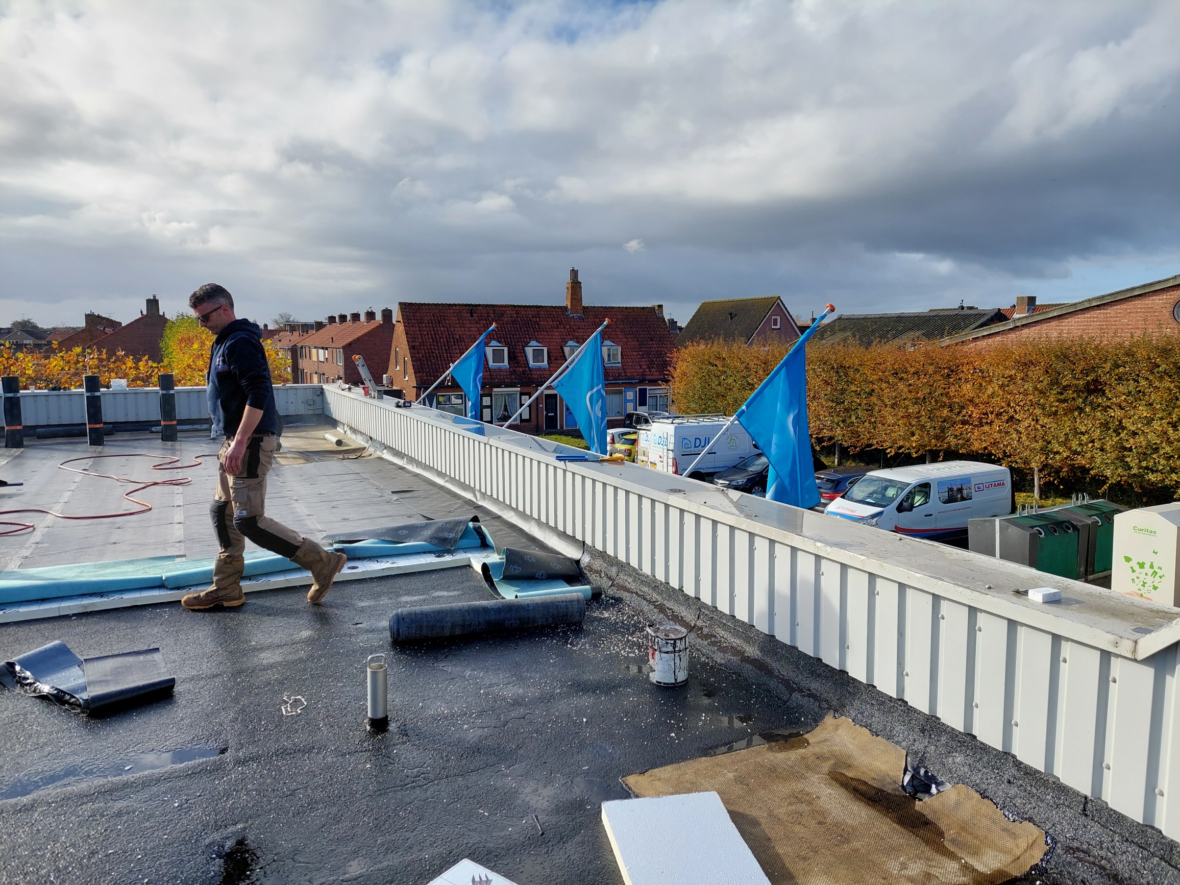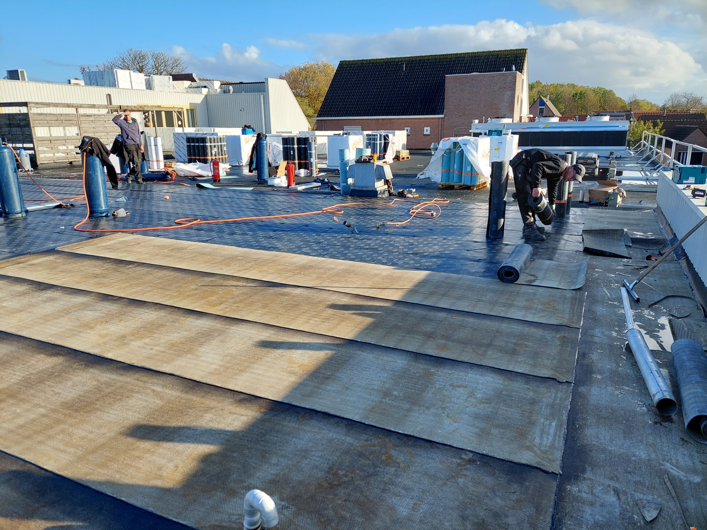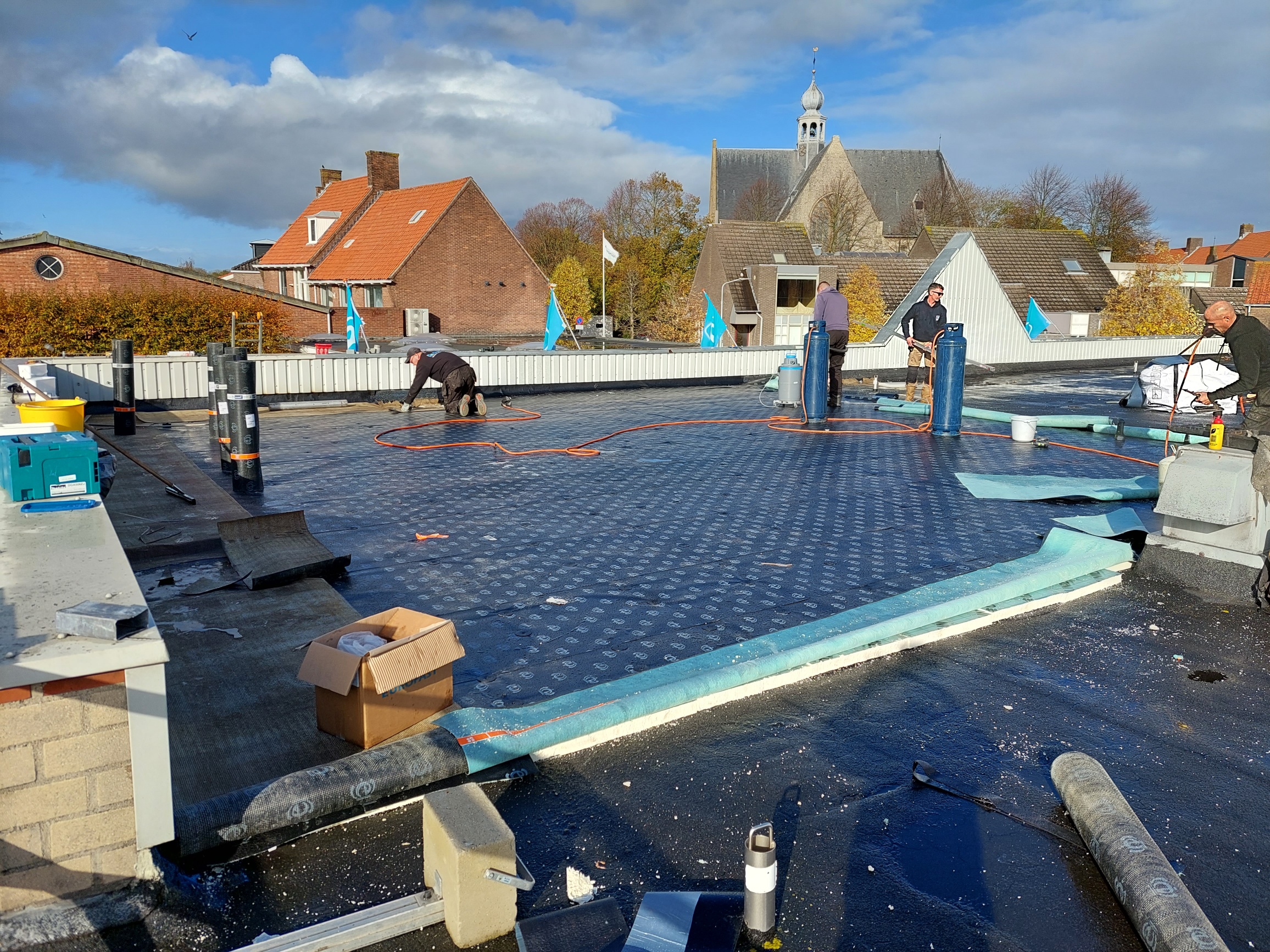 Dakrenovatie Albert Heijn Yerseke uitgevoerd door aanvullend te isoleren en een twee-laags dakbedekking systeem aan te brengen.