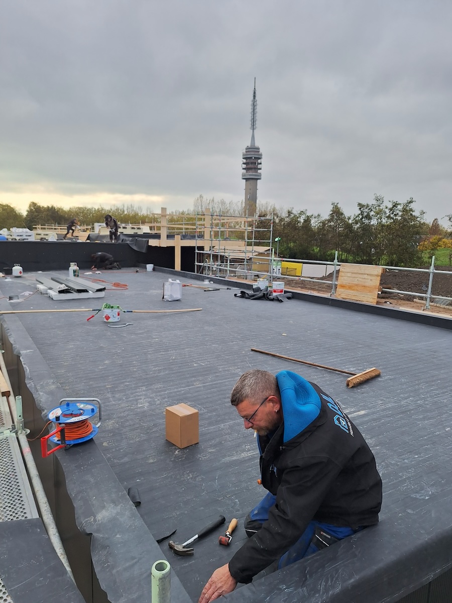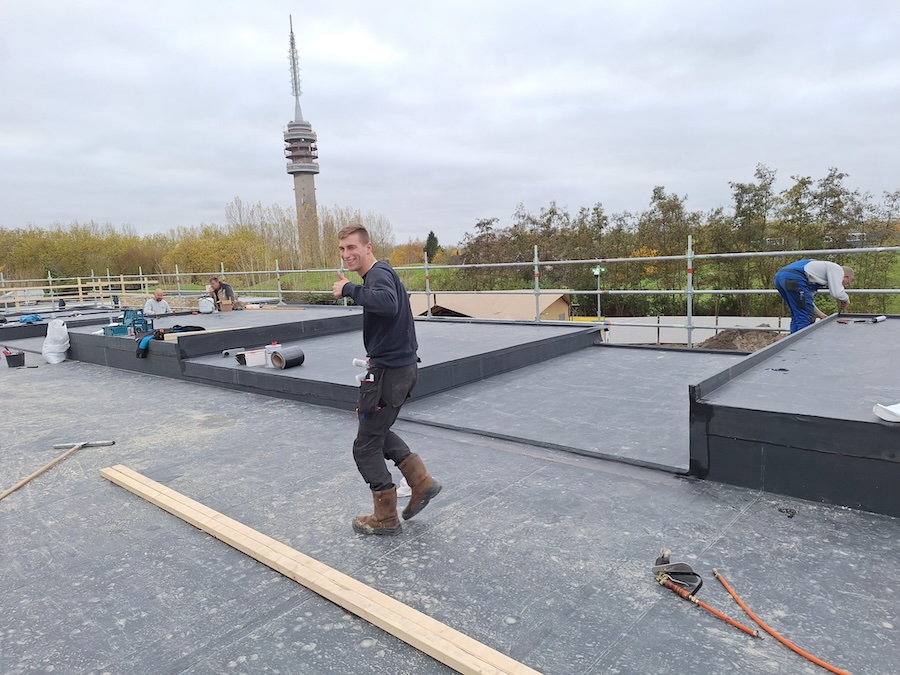 In opdracht van Aannemingsbedrijf Fraanje en in nauwe samenwerking met uitvoerder Cornel Wagenaar hebben we dit nieuwbouwproject voorzien van EPDM-dakbedekking van 1,5 mm dik. Dit materiaal biedt uitstekende waterdichtheid en duurzaamheid, perfect voor deze toepassing.