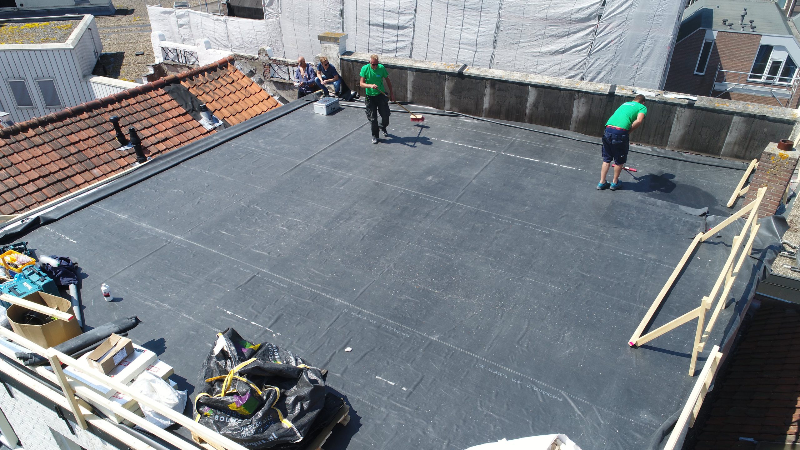 PIR-isolatie 80 mm met een Rd-waarde van 3,60 toegepast zodat de renovatie voldoet aan de voorwaarden m.b.t. subsidie isolerende maatregelen. EPDM-dakbedekking 1,2 mm toegepast, deze duurzame dakbedekking heeft een levensduur van circa 40 jaren.