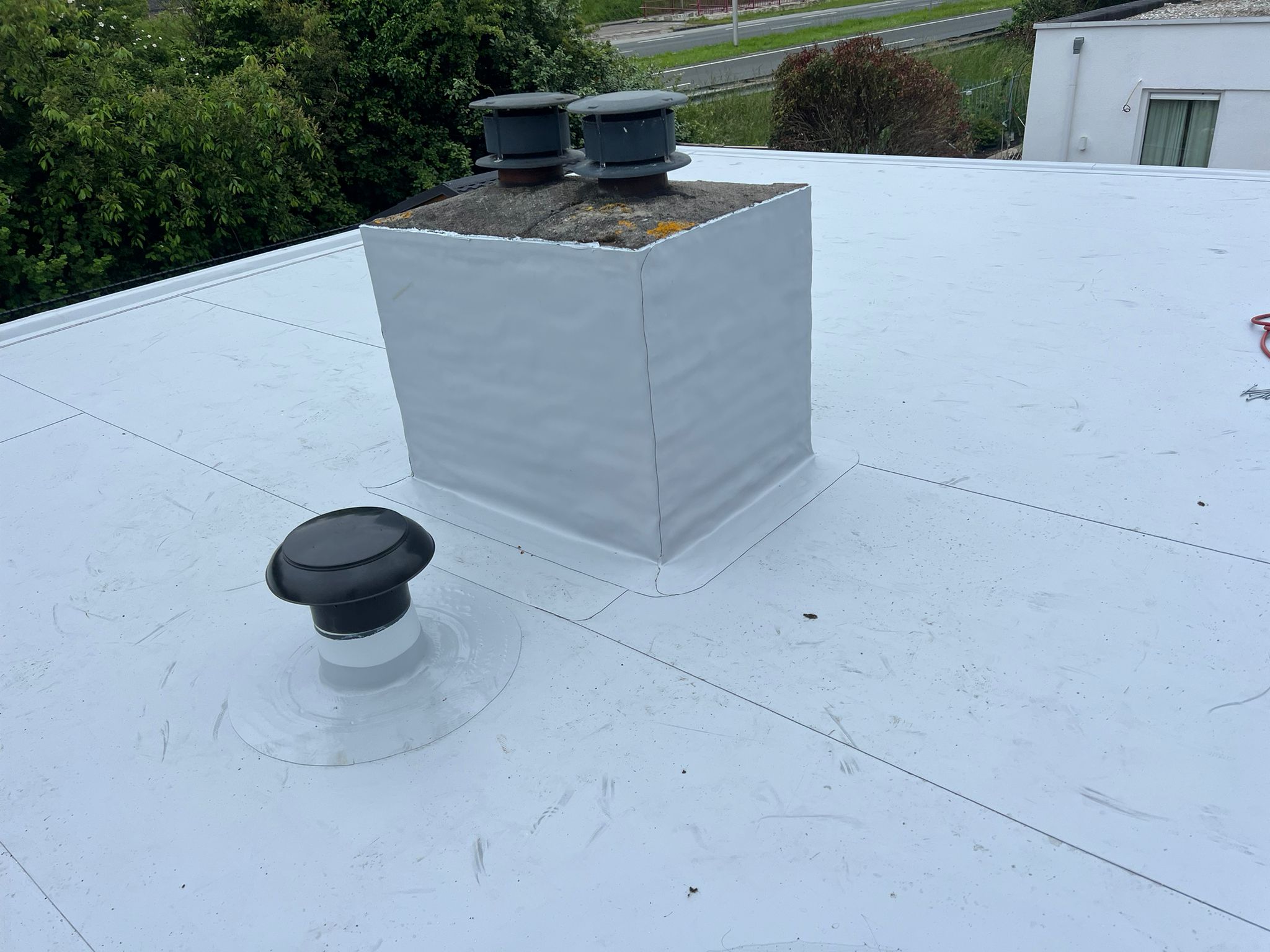 We hebben een particuliere woning in Vlissingen verduurzaamd door het aanbrengen van PIR-isolatie met een hoge RC-waarde van 6, gecombineerd met een lichtgrijze PVC-dakbedekking. Deze combinatie zorgt voor een uitstekende thermische isolatie en een esthetisch aantrekkelijk en duurzaam dakoppervlak.