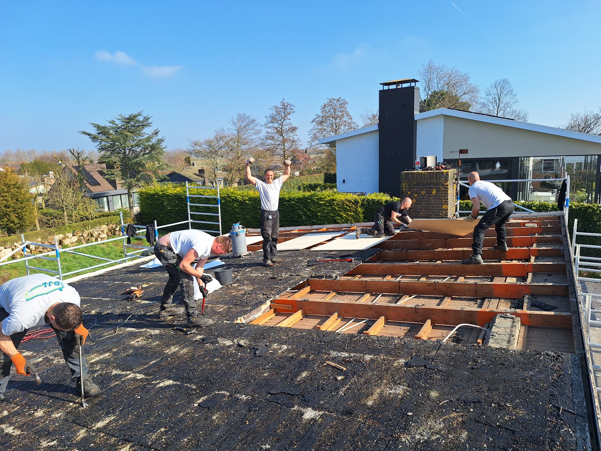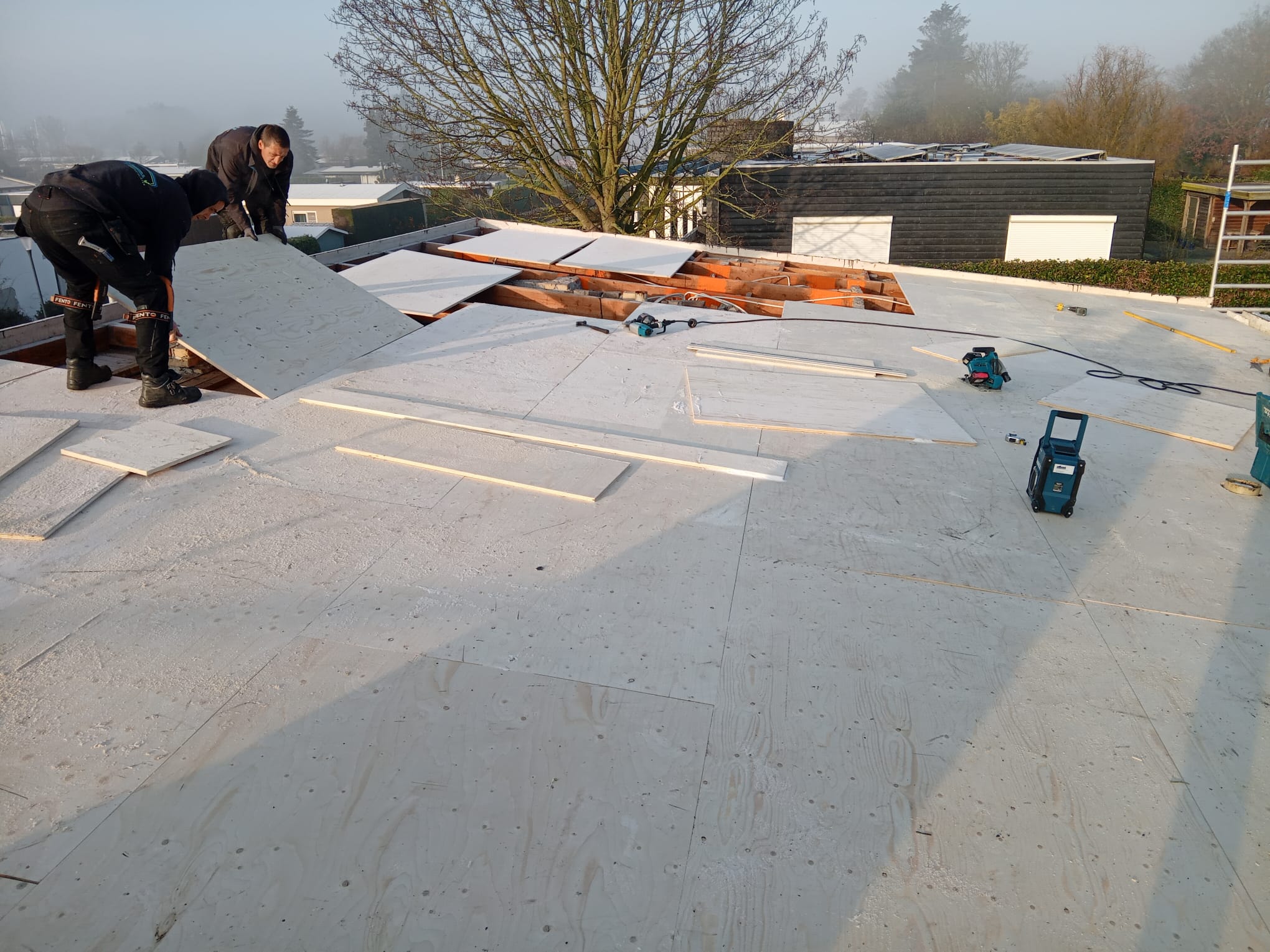 Daarna hebben we in eigen beheer het nieuwe dak opgebouwd: