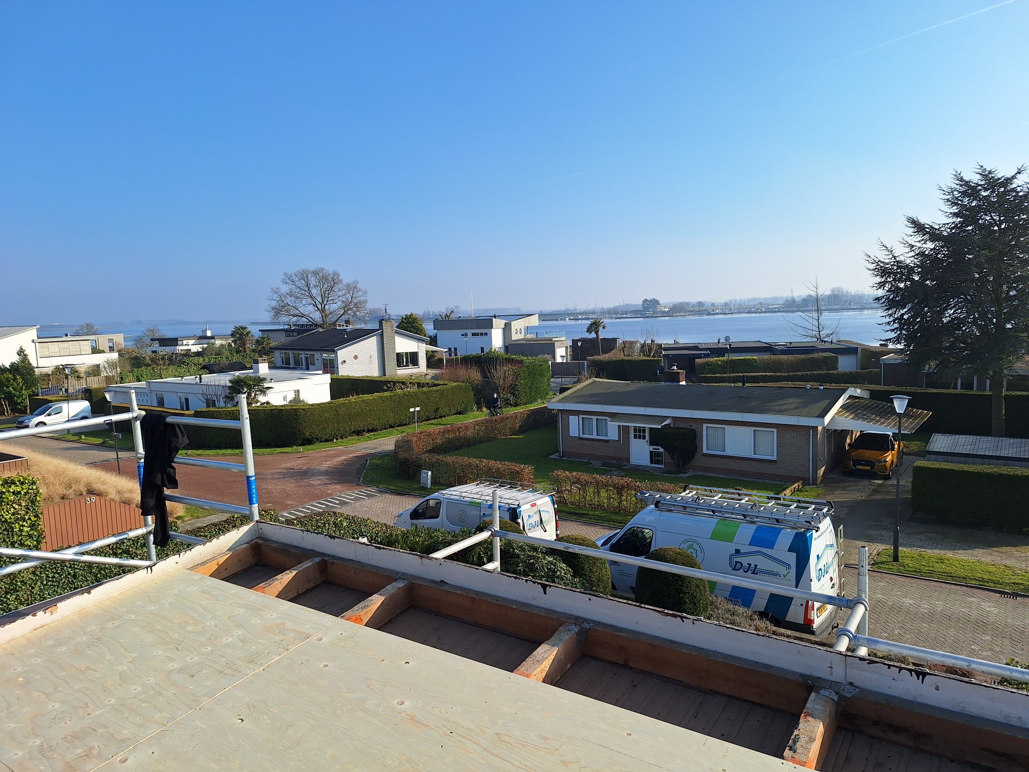 Voor deze prachtige villa in Kortgene, direct aan het Veerse Meer, hebben we een complete dakrenovatie uitgevoerd. We zijn gestart met het volledig verwijderen en afvoeren van de bestaande dakopbouw, helemaal terug tot op de balken.