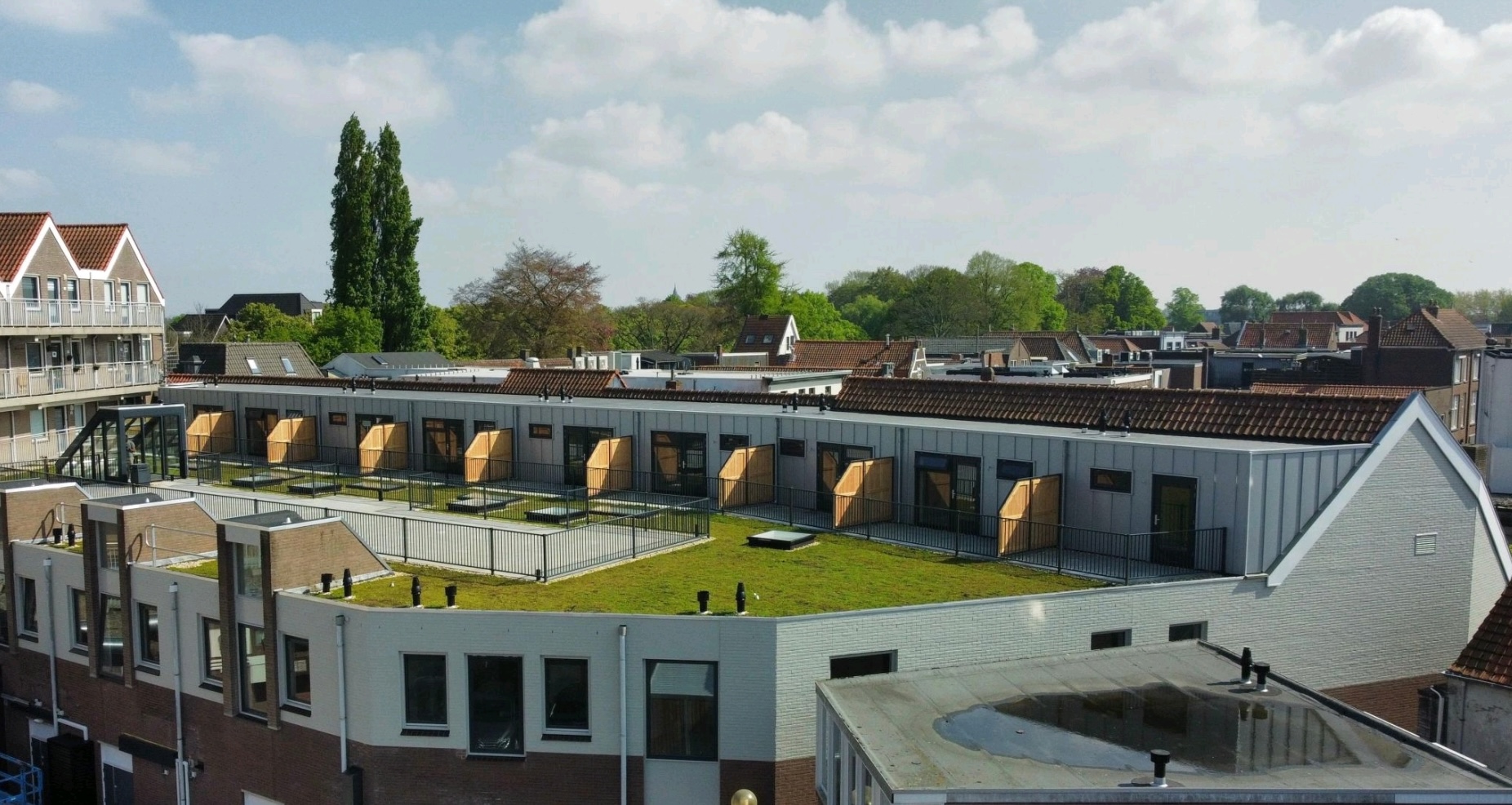 Voor het project Boekerij Goes verzorgde DJL Dakspecialisten de complete dakafwerking. Op het dak is gekozen voor een combinatie van wortelwerende bitumen, sedumbeplanting en tegels, waarmee een functioneel én visueel aantrekkelijk daklandschap is gerealiseerd.