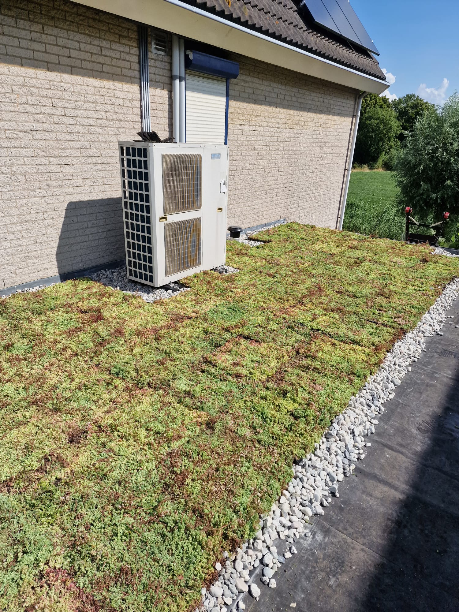Natuurlijke isolatie! We hebben een woningdak voorzien van een laag wortelwerende en sedum-dakbedekking. Dit ziet er mooi en natuurlijk uit. Het grote voordeel is dat dit ‘natuurlijk goed’ isoleert.